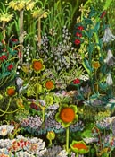 この作品はペンとカラーインクで描かれていますが、画面の隅々まで描き込まれた丁寧な表現によって、高野さん独特の幻想的な世界をリアルに感じさせてくれます。